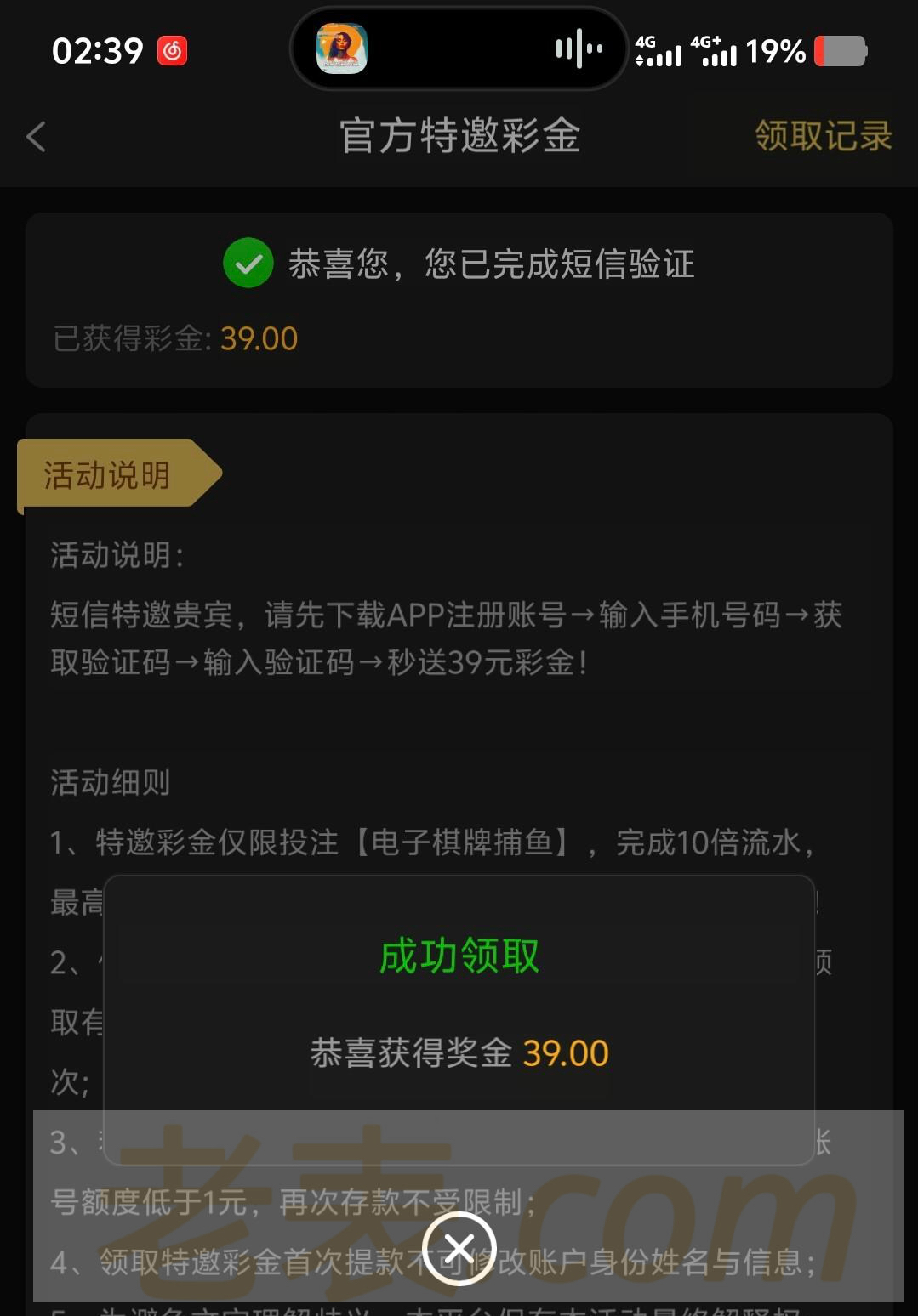 短信特邀39,我没打出来,看你们了老哥们,