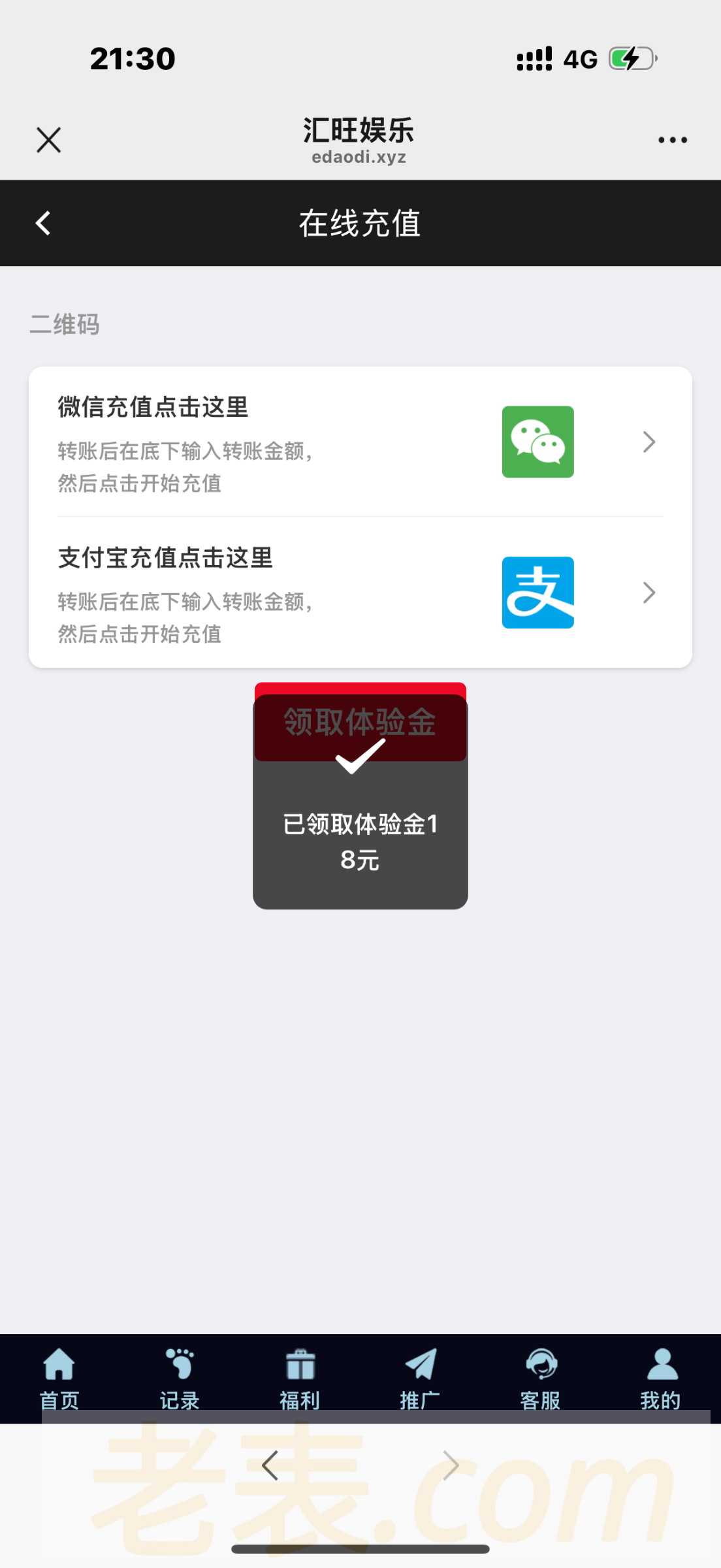 扫码登陆找客服领18体验金